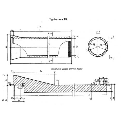 1. ТБ - труба цилиндрическая раструбная с упорным буртиком втулочного конца изделия и стыковыми соединениями, уплотняемыми резиновыми кольцами;