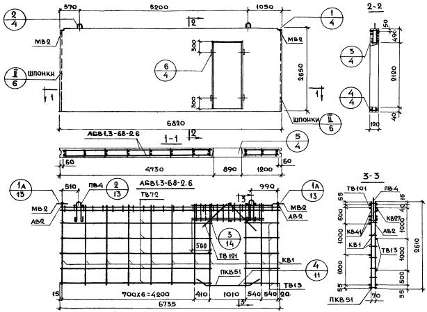 В1.3-68.27.12-2.6    Внутренние стеновые панели   (Серия 1.131-1).